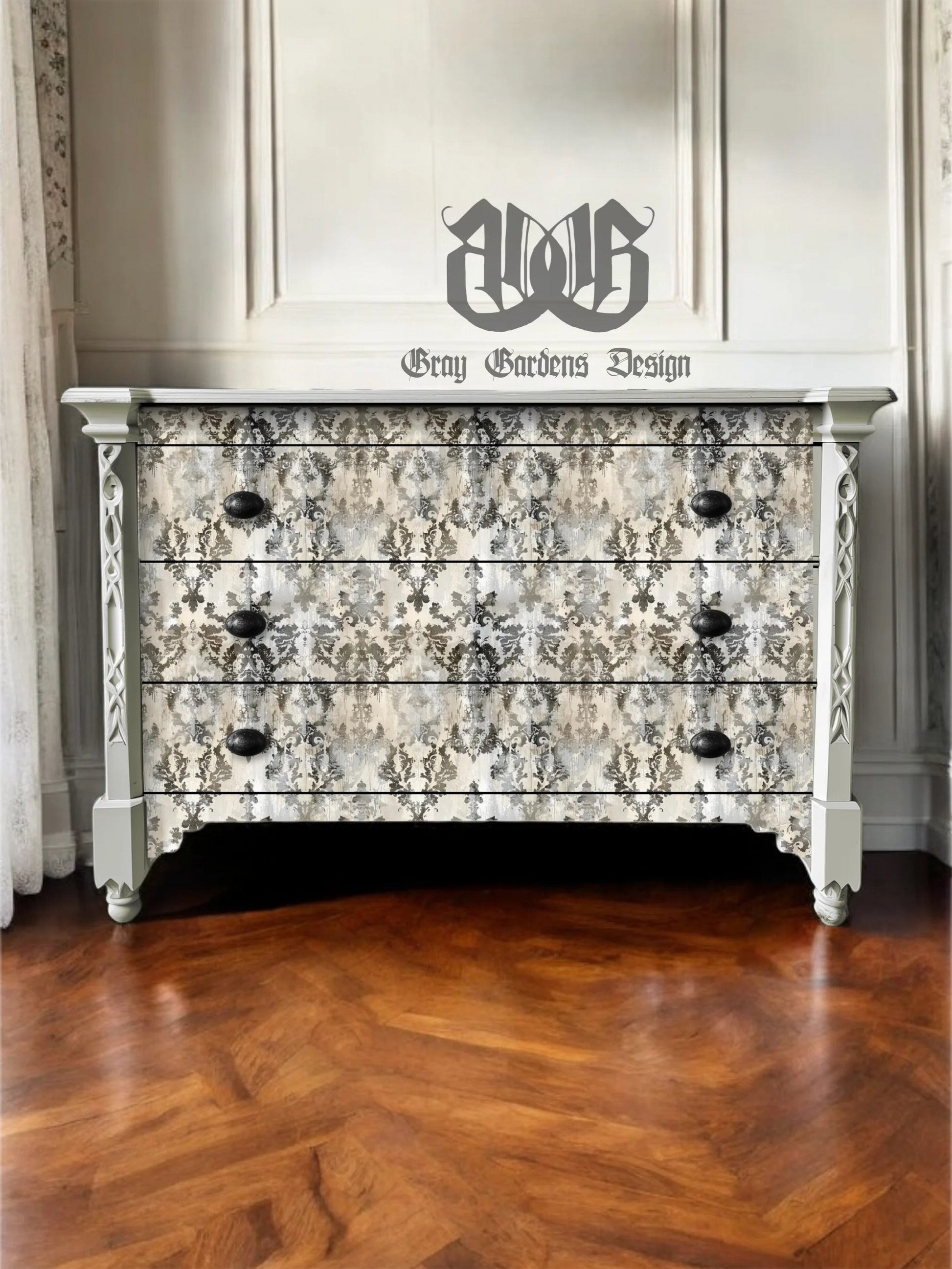 Delicate floral motifs and intricate patterns dance across a soft, creamy background, evoking the grandeur of ancient estates and forgotten heirlooms. This pattern is a repeating pattern.