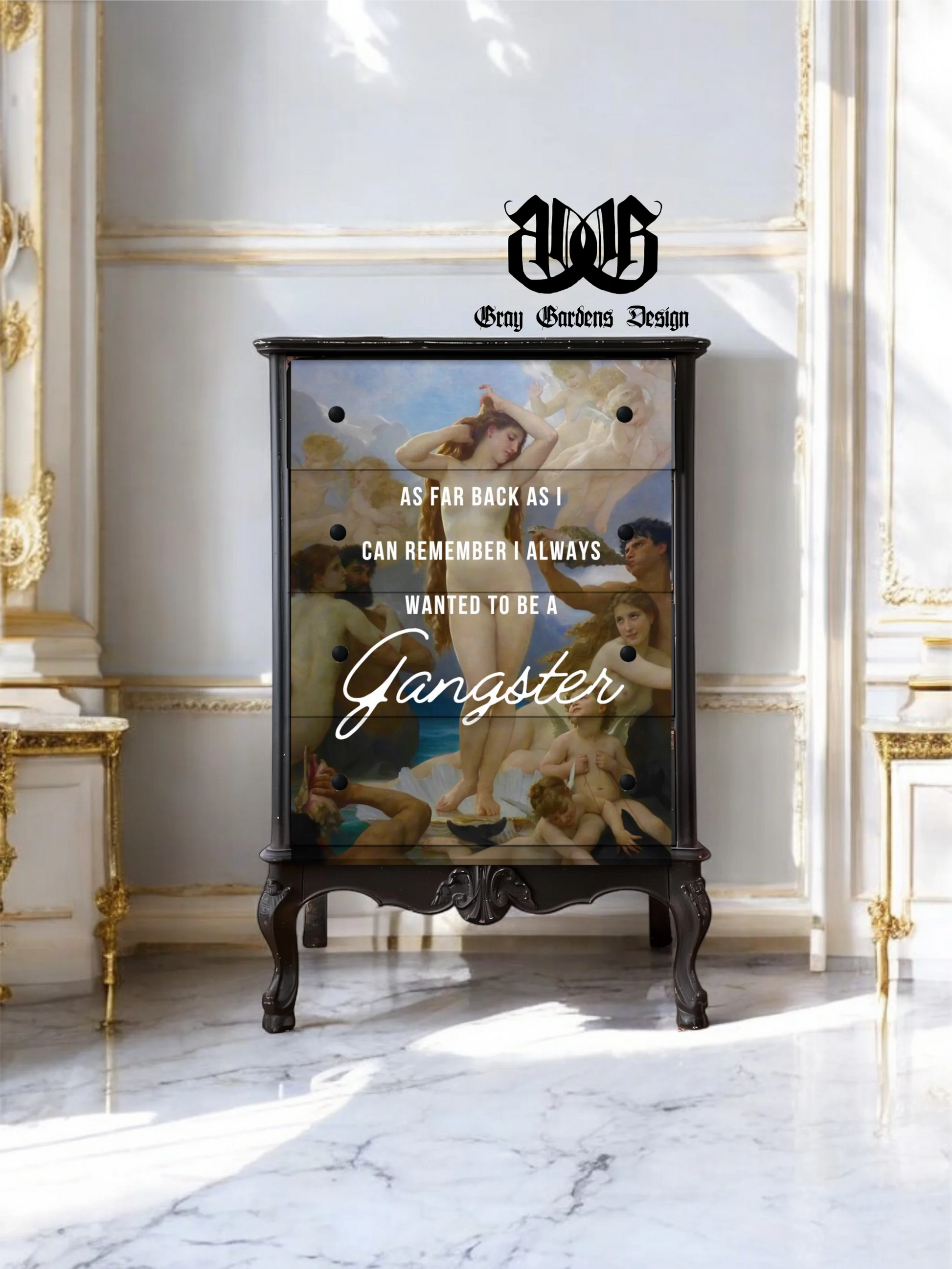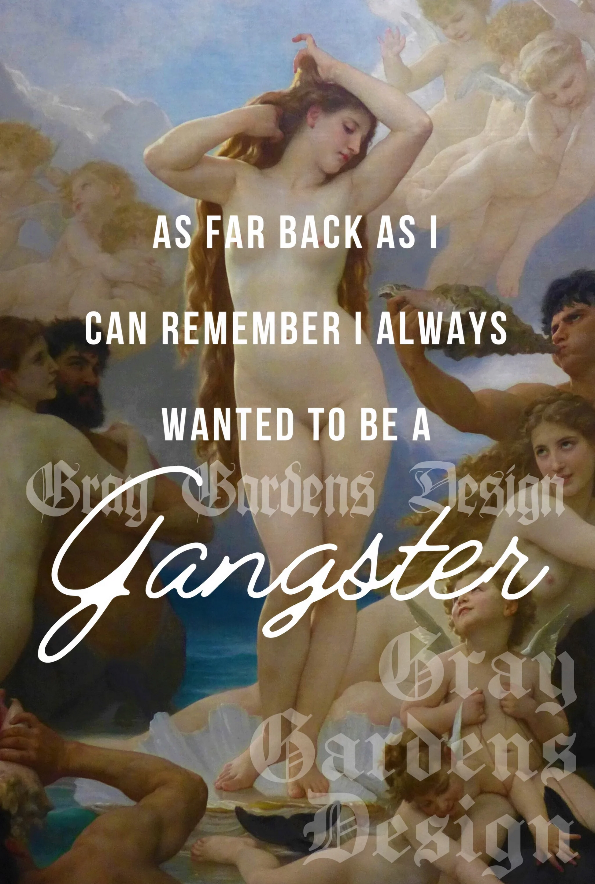 Add a touch of irony and humor to your DIY projects with our unique decoupage paper featuring a classic painting with a modern twist. "The Birth of Venus" by William Bouguereau gets a bold makeover with the words "As far back as I can remember, I always wanted to be a gangster" written across it, juxtaposing the serene and elegant scene with a quote inspired by Martin Scorsese's "Goodfellas".