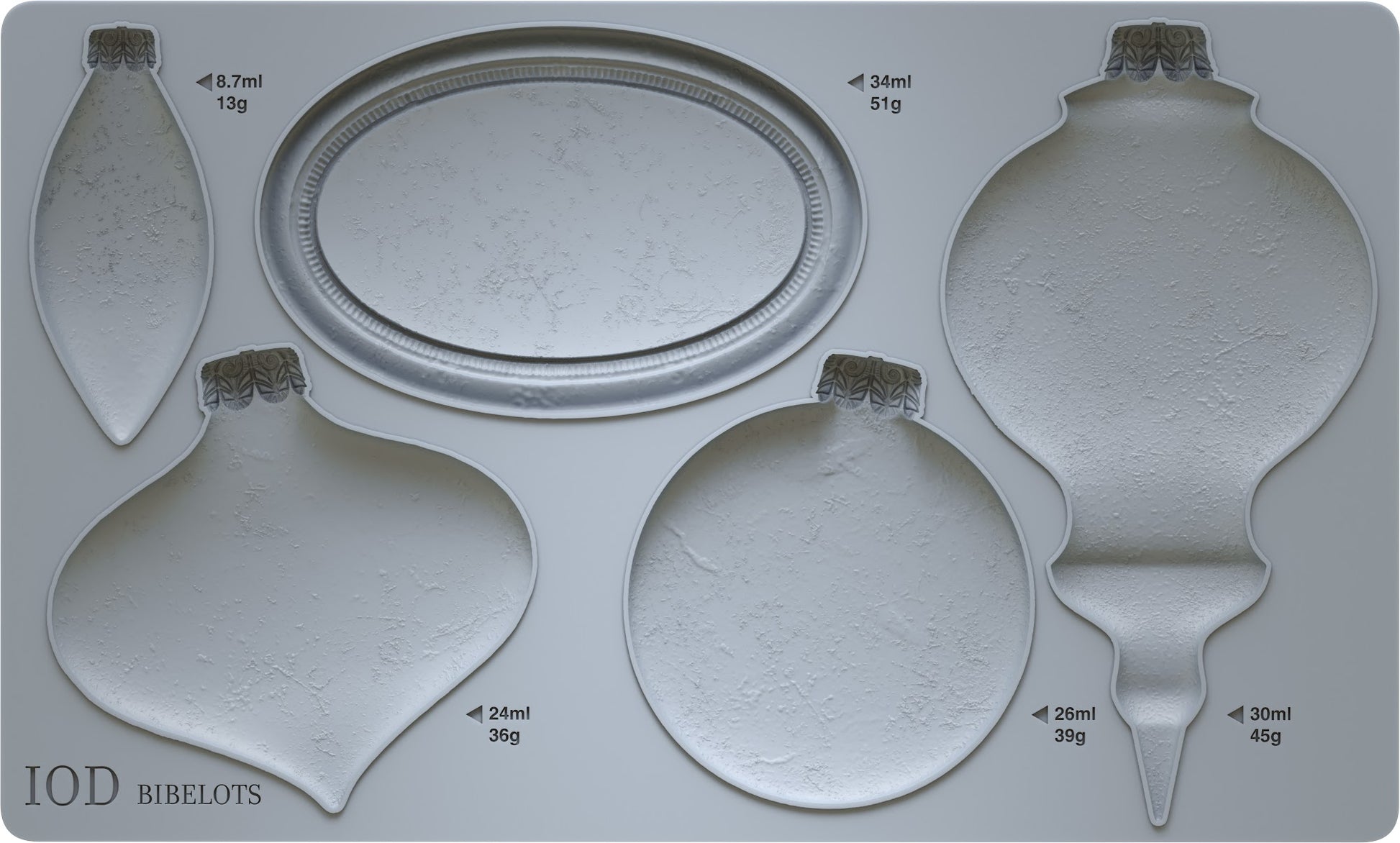 Meet Bibelots, an intentionally bare mould designed to be the base for layering up holiday creations like ornaments and labels. This mould will be your go-to while crafting darling, personalized gifts that your friends and family will cherish for years. Each casting differs from the next, offering detailed shapes that emulate a classical, vintage Christmas aesthetic.