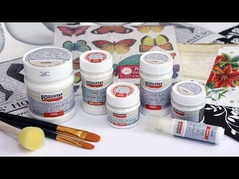 Water-based varnish and decoupage glue all-in one product. Formulated for rice paper, tissue paper and regular paper. Matte finish.