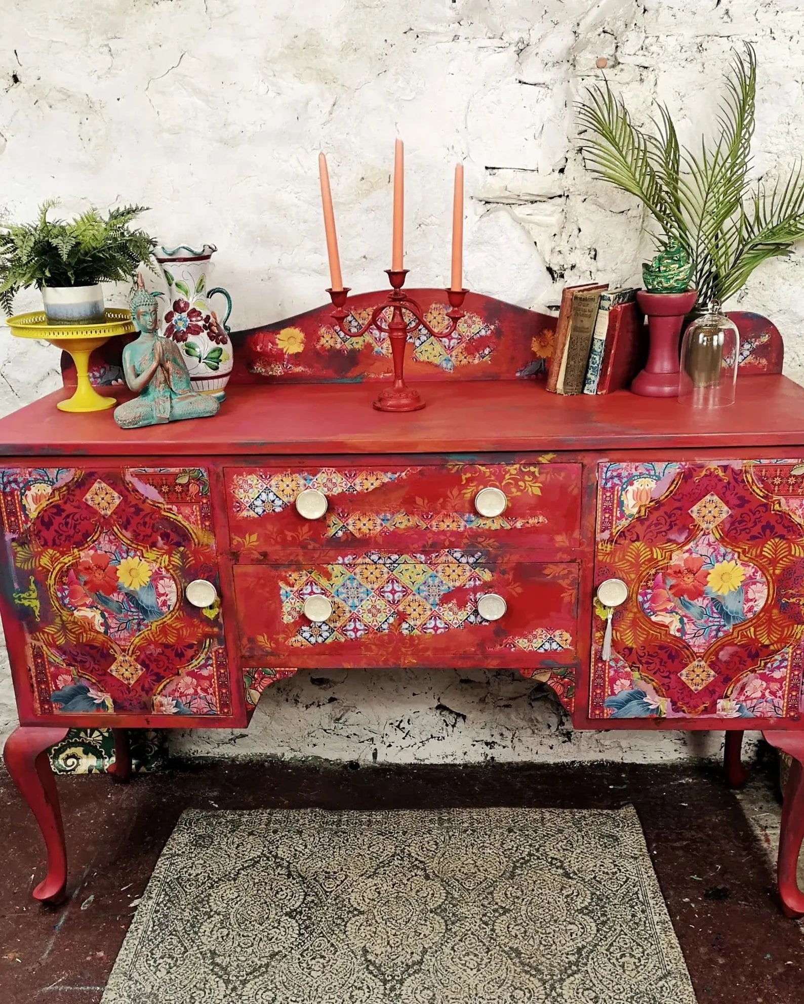 3 x A3 sheets (29.7 x 42cm) of beautifully designed furniture decoupage paper. Full of color, this bohemian pattern decoupage is unique and designed by Made By Marley.