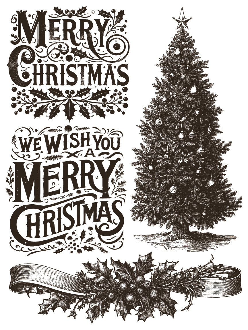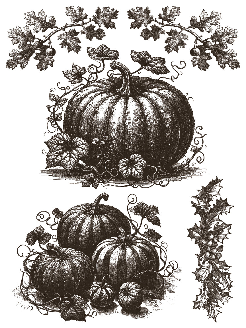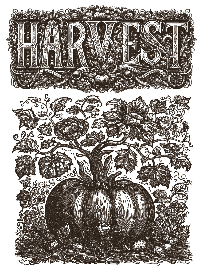 Meet Gloria, a Paint Inlay that offers a variety of vintage French flea market designs to help you craft fabulous projects for both fall and winter. The French type-setting and intricate foliage play into that bougie vintage vibe we love oh so much! The deep charcoal colors are simple yet stunning. Imagine these neutral tones paired with vibrant orange hues on fall wall art or dramatic reds on Christmas cookie trays.