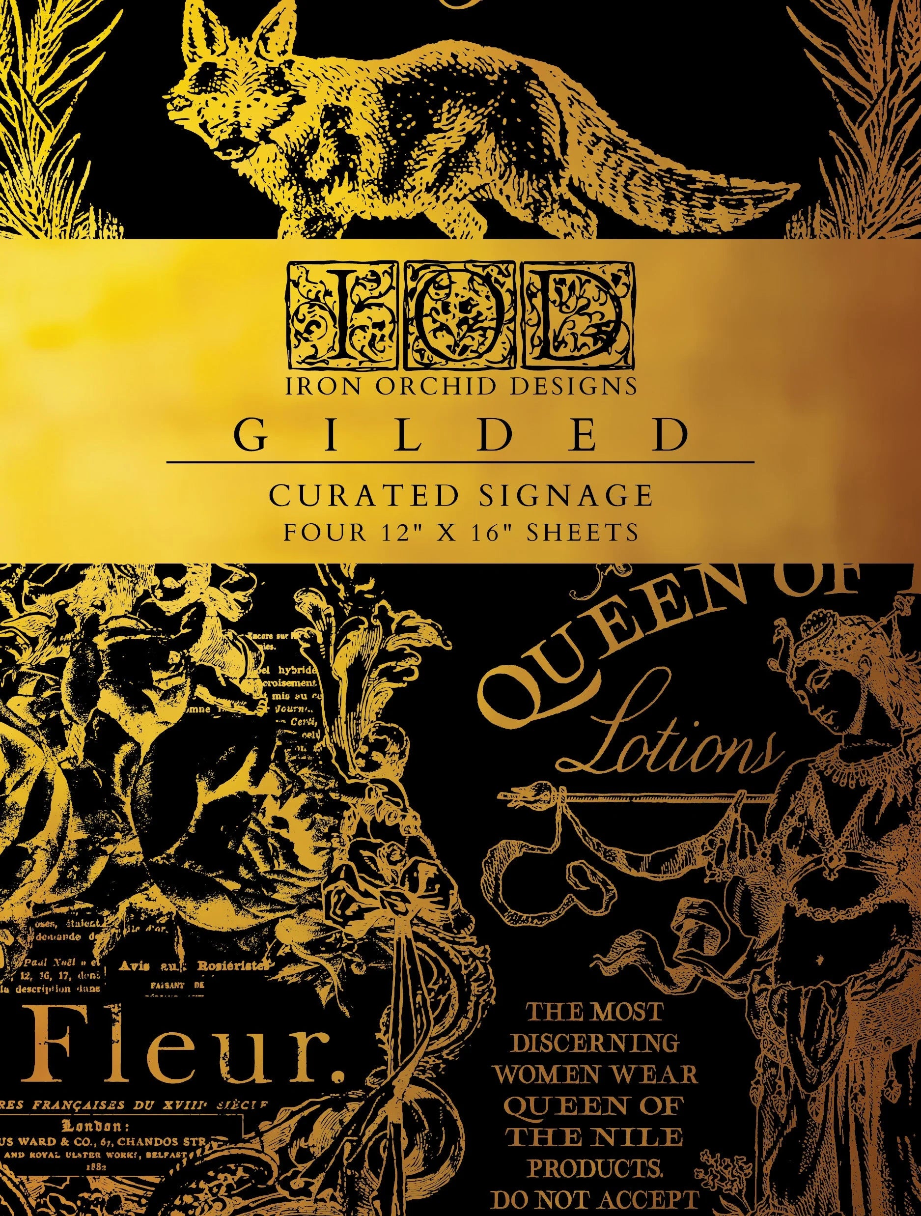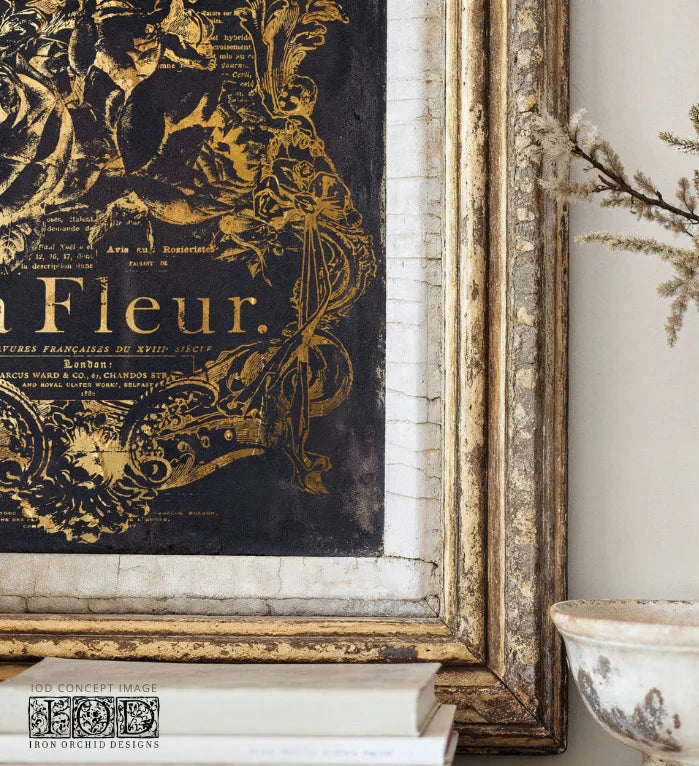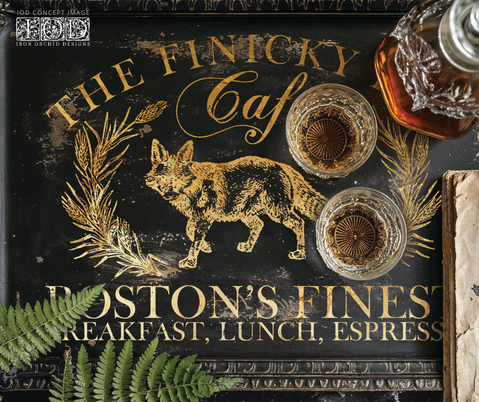 Our new Curated Signage Foil Transfer Pad puts a playful twist on classic IOD signage. With flourished frames and intricate typography inspired by 18th and 19th-century decorative arts, this collection includes favorites like Queen of the Nile, The Finicky Fox, and La Fleur, as well as a new addition: Repertoire. Each pad has 4 pages to add some gilded charm to your projects!