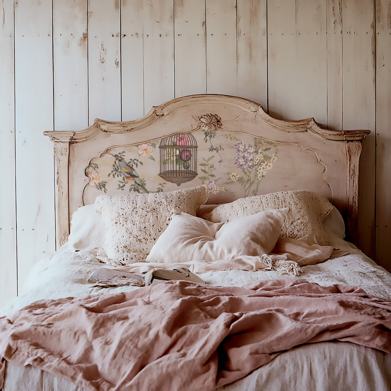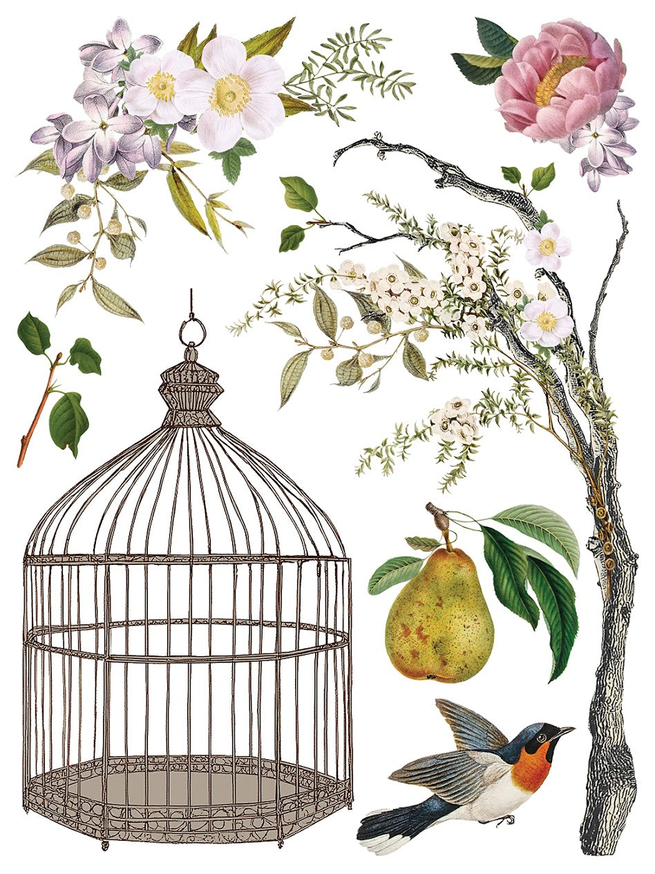 This beauty was inspired by vintage wallpapers that feature ethereal scenes of tropical birds, elaborate garden blooms, and exotic foliage. Menagerie is playful yet refined and beautiful for vintage furniture flips and statement small decor pieces like planters, lamps, and serving trays.