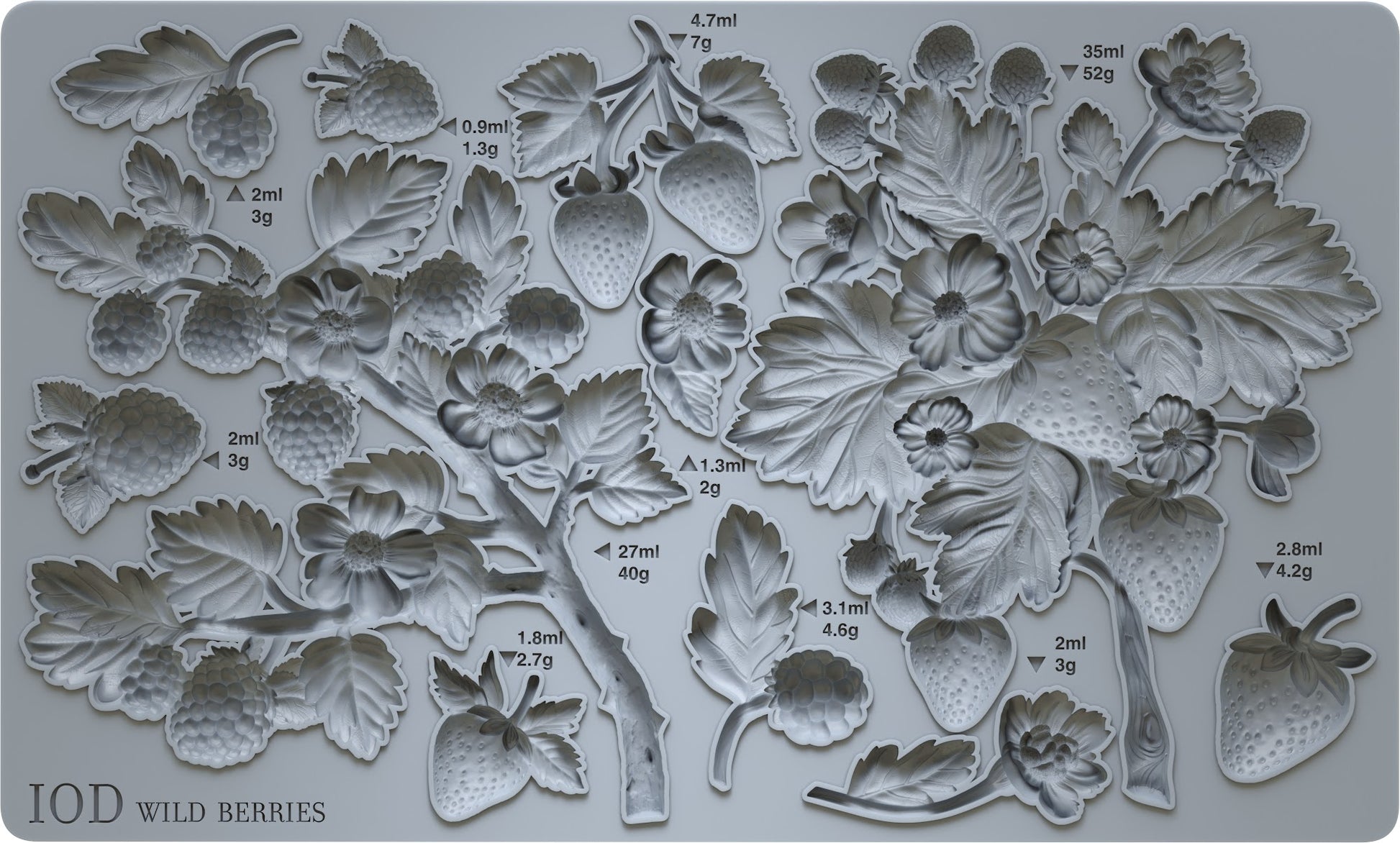 This scrumptious mould features plentiful clusters of strawberries and blackberries with delicate, ruffly leaves, sweet blossoms, and sprawling vines.